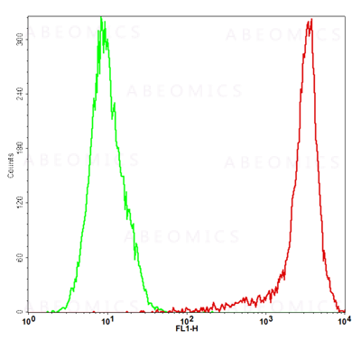 Fig-1: Detection of mouse CD73 in the CHO-K1/mCD73 stable cell line by Flow Cytometry [Cell surface staining]. CHO-K1 cells (Green); CHO-K1/mCD73 cells (Red).