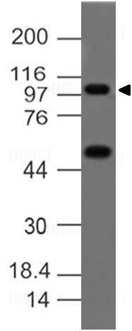 Fig:1- Expression analysis of A20. Anti-A20 antibody (Clone: ABM1G20) was tested at 4 µg/ml on THP-1 Lysate.
