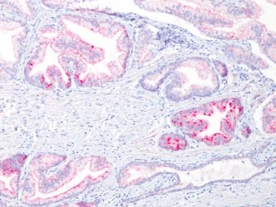 Formalin-fixed, paraffin-embedded human Prostate Carcinoma stained with AMACR / p504S Rabbit Monoclonal Antibody (13H4)