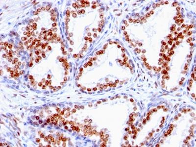 Formalin-fixed, paraffin-embedded human Prostate Carcinoma stained with Androgen Receptor Monoclonal Antibody (SPM335).