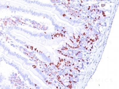 Formalin-fixed, paraffin-embedded Mouse Small Intestine stained with BrdU Monoclonal Antibody (BRD.3).