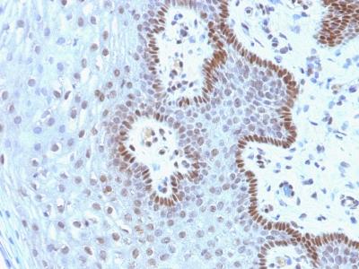 Formalin-fixed, paraffin-embedded human Cervical Carcinoma stained with c-myc Monoclonal Antibody (9E10.3).