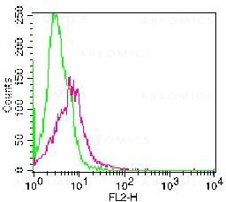 Figure-1: Cell surface staining of PHA stimulated PBMC. Green represents isotype control, red represents Anti-CD137 (10-7620). 1 µg antibody was used. Goat anti-mouse PE was used as secondary antibody.