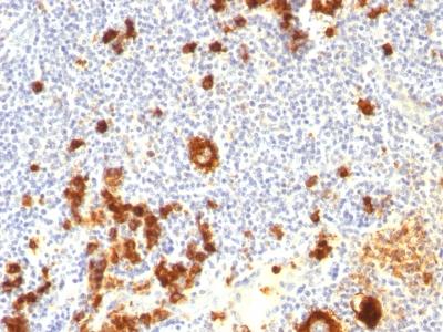 Formalin-fixed, paraffin-embedded human Hodgkin's Lymphoma stained with CD15 Monoclonal Antibody (FUT4/815 + BRA-4F1).
