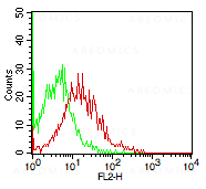 Figure 1: Cell surface staining of PBMC using anti-CD16, clone B73.1 antibody (10-4206). Green histogram: Isotype control. Red histogram: anti-CD16 antibody. Goat anti-mouse PE was used as secondary antibody. 0.5 µg antibody was used.