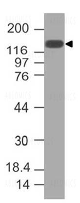 Figure-1: Western blot analysis of CD163. Anti-CD163 antibody (Clone: ABM5A68) was tested at 2 µg/ml on h Spleen lysate.