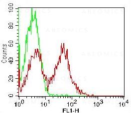 Fig. 1: Cell surface staining of PBMC (lymphocytes gated). Green represents FITC conjugated Isotype control (ABEOMICS). Red represents FITC conjugated anti-CD24 clone ML-1 (10-4186-F). 0.5 µgantibodies were used.