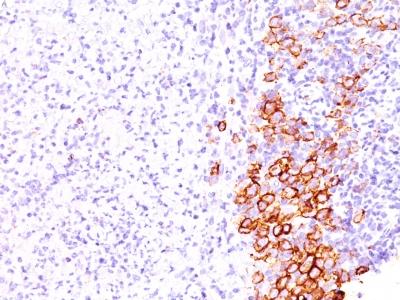 Formalin-fixed, paraffin-embedded human Hodgkin's Lymphoma stained with CD30 Monoclonal Antibody (SPM609).