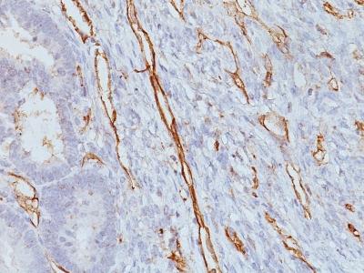 Formalin-fixed, paraffin-embedded human Colon Carcinoma stained with CD31 Monoclonal Antibody (JC/70A)