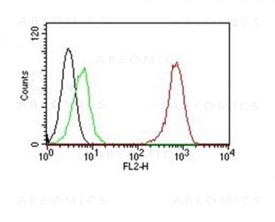 Flow Cytometry of human CD31 on Jurkat Cells. Black: Cells alone; Green: Isotype Control; Red: PE-labeled CD31 Monoclonal Antibody (SPM122).