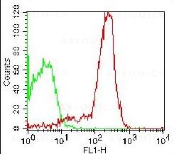 Fig:1- Cell Surface flow analysis of FITC conjugated hCD44 in PBMC (Lymphocytes gated) using 0.5 µg antibody per 10^6 cells. Green represents isotype control (ABEOMICS); red represents FITC conjugated anti-hCD44 antibody (10-7516F).