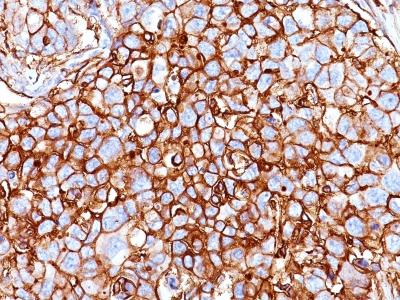 Formalin-fixed, paraffin-embedded human Breast Carcinoma stained with CD44 Monoclonal Antibody (HCAM/918)