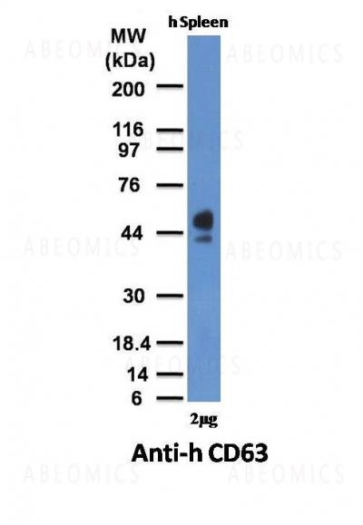 Western Blot of human spleen Lysate with CD63 Monoclonal Antibody (NKI/C3)