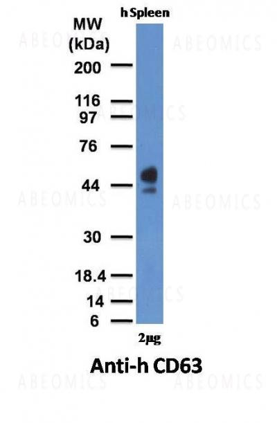 Western Blot of human Spleen Lysate with CD63 Monoclonal Antibody (SPM524)