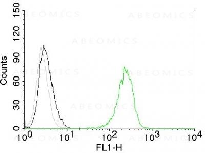 Flow Cytometry of human CD71 on Jurkat Cells. Black: Cells alone; Grey: Isotype Control; Green: AF488-labeled CD71 Monoclonal Antibody (TFRC/1059).