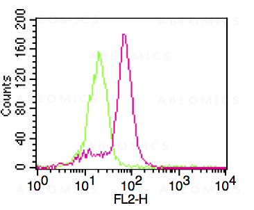 Fig.1: Cell surface staining of PBMC. Green represents Isotype control Red represents anti-CDW78 (10-4182). 0.5 µgantibody was used. Goat anti-mouse PE was used was secondary antibody.