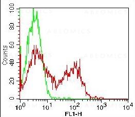 Fig.1: Cell surface staining of PBMC. Green represents FITC conjugated Isotope control Red represents FITC conjugated anti-CDw78 (10-4182-F). 0.5 µg antibody was used.