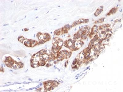 Formalin-fixed, paraffin-embedded human Breast Carcinoma stained with Cytokeratin 18 Monoclonal Antibody (SPM510).