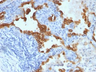 Formalin-fixed, paraffin-embedded human Lung Carcinoma stained with Cytokeratin 8/18 Monoclonal Antibody (B22.1 + B23.1).