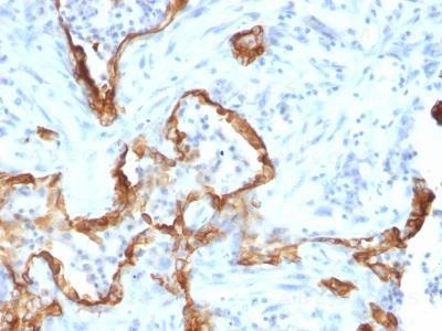 Formalin-fixed, paraffin-embedded human Lung Carcinoma stained with Cytokeratin 8 Monoclonal Antibody (SPM192).