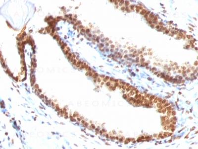 Immunohistochemistry (Formalin-fixed) (1-2ug/ml for 30 minutes at RT) (Staining of formalin-fixed tissues requires heating tissue sections in 10mM Tris with 1mM EDTA, pH 9.0, for 45 min at 95°C followed by cooling at RT for 20 minutes);
