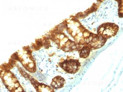 Formalin-fixed, paraffin-embedded Rat Colon stained with Ep-CAM Monoclonal Antibody (Epcam/1159).