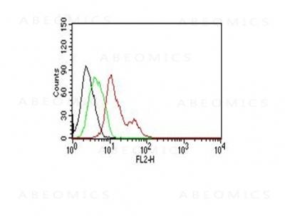 Flow Cytometry for human ER-alpha on MCF-7 Cells.Black: Cells alone; Green: Isotype Control; Red: PE-labeled ER-alpha Monoclonal Antibody (ER506).