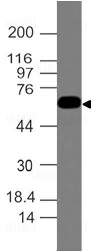 Fig:1- Expression analysis of Ferroportin. Anti-Ferroportin antibody (Clone: ABM51D1) was tested at 2 µg/ml on h Liver lysate.