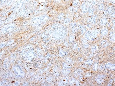 Formalin-fixed, paraffin-embedded human Pancreatic Adenocarcinoma stained with Fibronectin Monoclonal Antibody (SPM539).