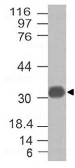Fig-1: Western blot analysis of Galectin 13. Anti- Galectin 13 antibody (Clone: ABM4E42) was tested at 2.0 µg/ml on h Testis lysate.