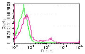 Figure-1: Cell Surface flow analysis of human CD19 antibody in PBMC (Lymphocyte gated) using 0.5 µg/10^6 cells. Green represents isotype control (ABEOMICS); red represents FITC conjugated CD19 (10-4127) antibody.