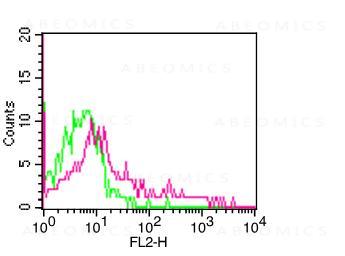 Fig-1: Cell surface flowcytometric staining of HLA-DP in hPBMC using 0.5 µg/ 10^6 cells of Anti-hHLA-DP (Clone:ABM54B6). Green represents isotype control; red represents anti-HLA-DP antibody. Goat anti-mouse PE conjugate was used as secondary antibody.