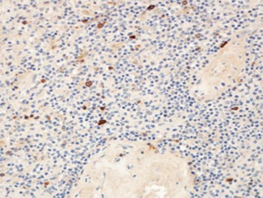 Figure-1: Immunohistochemical analysis of Human CD180 (Clone : MHR73) in human Spleen tissue by using 1:50 dilution of anti-CD180 antibody.