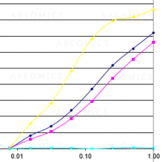 Figure-1: Immuno Assay experiment. 10-3538 was used as detection antibody in different concentrations. The light blue line is a negative control.