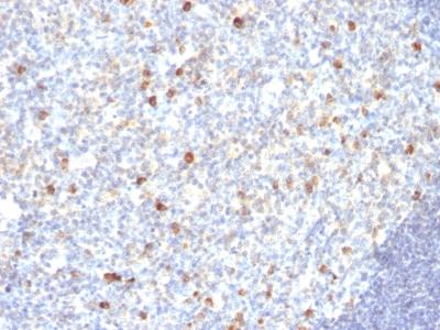 Formalin-fixed, paraffin-embedded human Tonsil stained with IgM Monoclonal Antibody (SPM188)