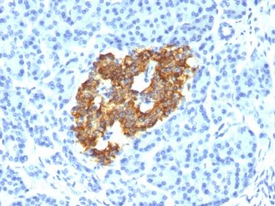 Formalin-fixed, paraffin-embedded human Pancreas stained with Insulin Monoclonal Antibody (IRDN/794).
