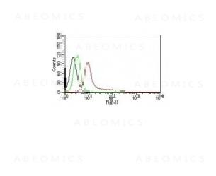 Flow Cytometry of human Ku (p70/p80) on K562 Cells. Black: Cells alone; Green: Isotype Control; Red: PE-labeled Ku Monoclonal Antibody (KU729).