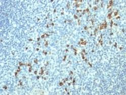 Formalin-fixed, paraffin-embedded human Tonsil stained with Lambda Light Chain Monoclonal Antibody (HP6054).