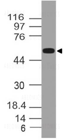 Figure-1: Western blot analysis of Lck. Anti- Lck antibody (Clone: ABM18H9) was used at 1 µg/ml on Daudi lysate.