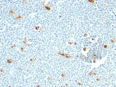 Formalin-fixed, paraffin-embedded human Tonsil stained with Macrophage Monoclonal Antibody (LN-5)
