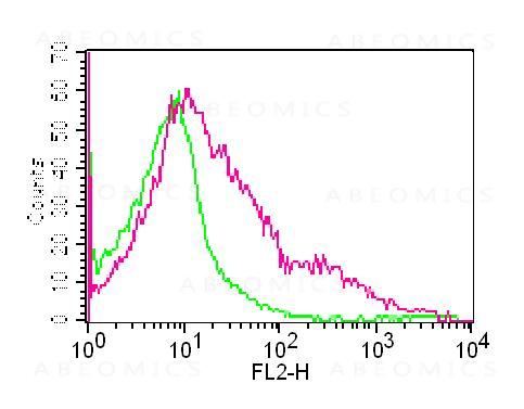 Figure-1: Cell Surface Flowcytometric analysis of Mouse FR4 in Mouse Splenocytes at 0.5 µg/10^6 Cells using Anti-mFR4 (Clone: 12A5). Green represent Isotype Control and Red represent Anti-Mouse FR4 (10-4084 Abeomics. Goat Anti Rat PE conjugated was used as the Secondary Antibody.)