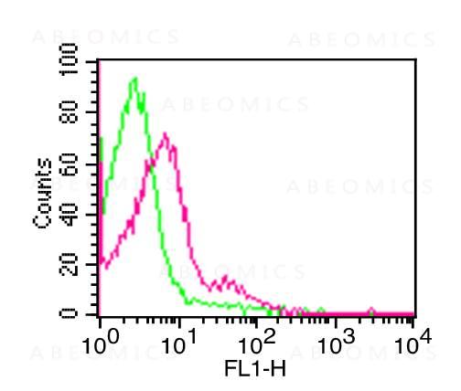Figure-1: Cell surface flow analysis of FITC conjugated mTLR4 antibody (cloneMTS510) in mSplenocytes using 0.5 µg/10^6 cells. Green represents isotype control; red represents FITC conjugated anti-mTLR4 antibody.