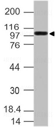 Fig-1: Western blot analysis of mTLR9. Anti-mTLR9 antibody (Clone: ABM4D70) was tested at 2 µg/ml on mouse Small Intestine lysate.