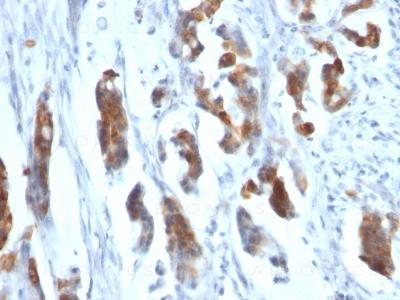 Formalin-fixed, paraffin-embedded human Gastric Carcinoma stained with MUC5AC Monoclonal Antibody (CLH2).