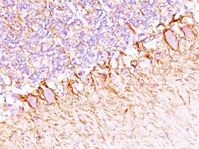 Formalin-fixed, paraffin-embedded human Cerebellum stained with Neurofilament Monoclonal Antibody (NF421 + NFL/736).