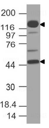 Figure-1: Western blot analysis of NUT. Anti-NUT antibody (Clone: ABM56F7) was tested at 2 µg/ml on h Testis lysate.
