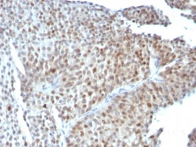 Formalin-fixed, paraffin-embedded human Bladder Carcinoma stained with p53 Monoclonal Antibody (SPM589).