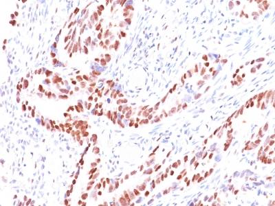 Formalin-fixed, paraffin-embedded human Colon Carcinoma stained with p57 Monoclonal Antibody (KIP2/880).