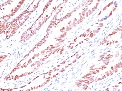 Immunohistochemistry (Formalin-fixed) (1-2ug/ml for 30 min at RT)(Staining of formalin-fixed tissues requires heating tissue sections in 10mM Tris with 1mM EDTA, pH 9.0, for 45 min at 95°C followed by cooling at RT for 20 minutes);