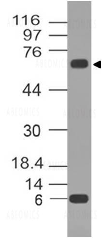 Fig-1: Western blot analysis of p73. Anti-p73 antibody (Clone: ABM13D1) was used at 2 µg/ml on 293 lysate.